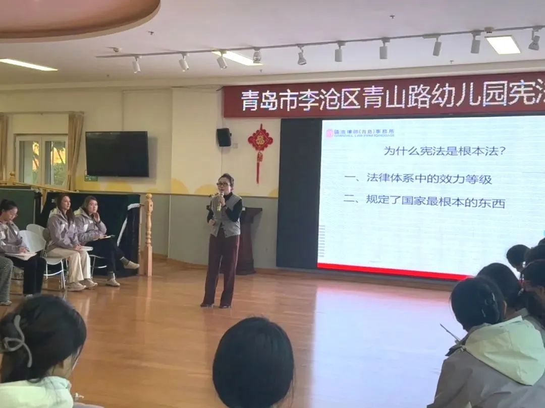 11月29日,國浩青島律師毛紅妍走進青島市李滄區青山路幼兒園,為全體教職工進行憲法知識培訓,不僅提高了教職工們的守法意識,也讓大家了解了如何在用法律的準繩規范自己教學行為的同時,維護自身的合法權益。