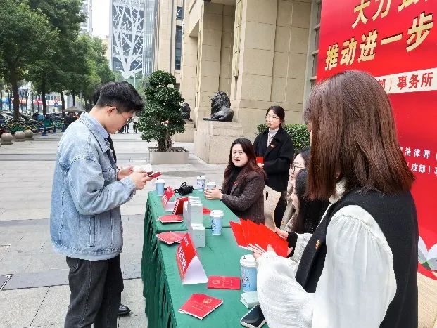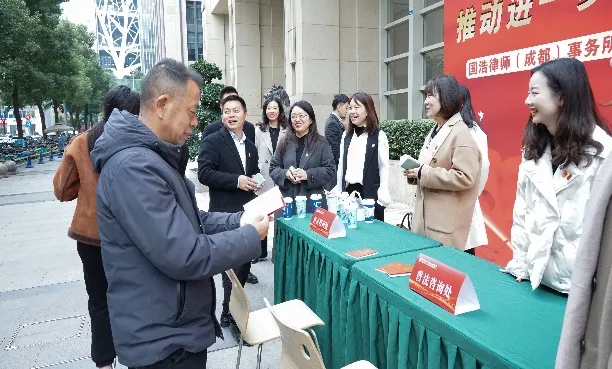國浩成都黨員律師和國浩成都青工委的青年委員們在成都高新技術產業開發區云華路設立咨詢臺,憑借豐富的法律知識和實踐經驗,現場耐心解答了群眾關于婚姻家庭、勞動爭議、合同糾紛等方面的法律問題,受到了高度評價。