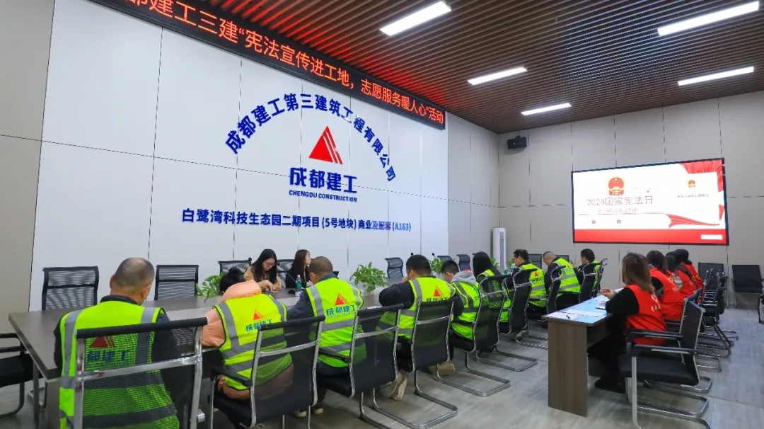12月4日,國浩成都律師助理蒲姝伶在白鷺灣科技生態園二期項目(5號地塊)商業及配套項目部開展了“憲法宣傳進工地,志愿服務暖人心”憲法宣傳活動。她深入講解了憲法產生的淵源、憲法的發展歷史、憲法的具體條款等內容,并在項目部張貼了相關宣傳海報,向項目部管理人員分發了憲法普法宣傳冊等,進一步提高了大家的法治意識。