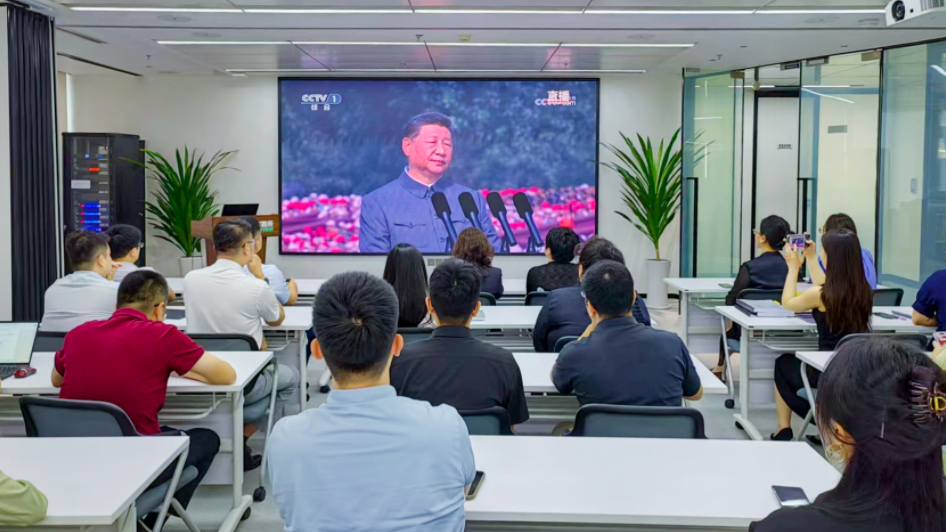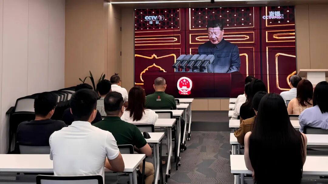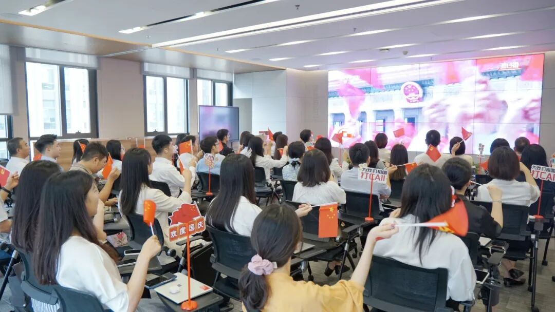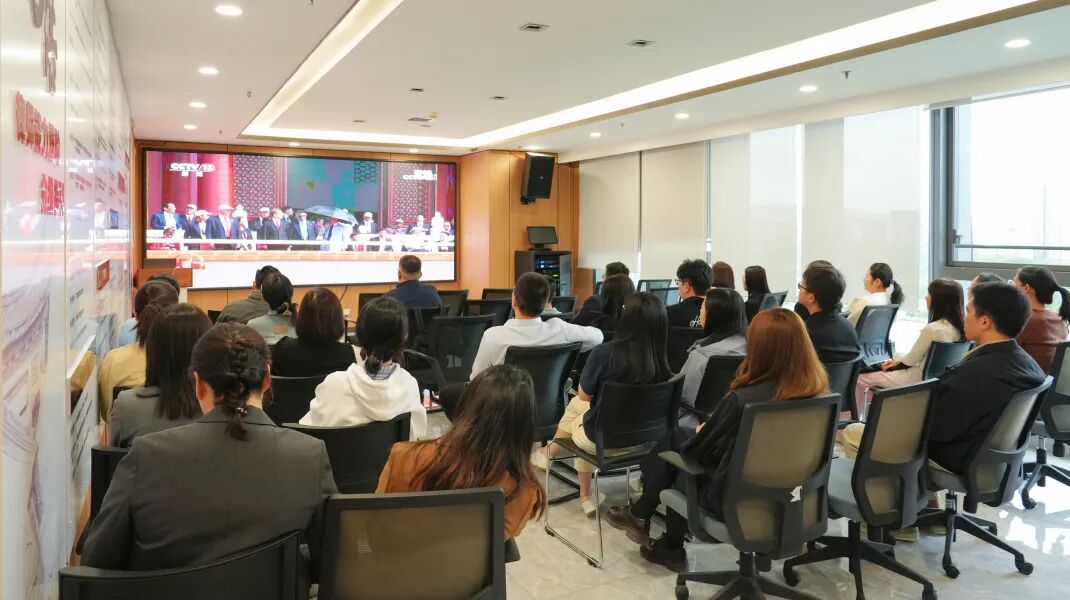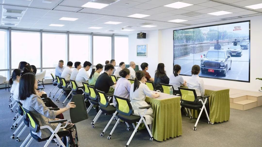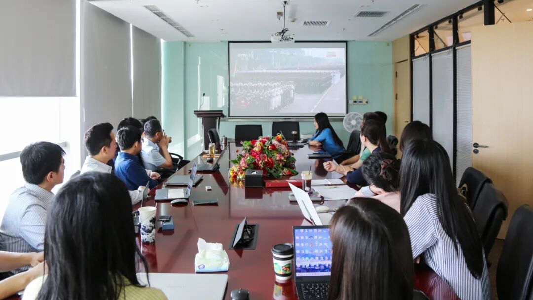 國浩海南黨總支結合“國浩開放日”,組織全體成員及其親友在國浩海南圓廳觀看閱兵儀式直播。