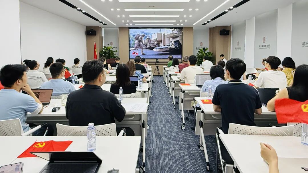 國浩南寧辦公室組織黨員律師、入黨積極分子在國浩南寧大會議室集中觀看了閱兵儀式直播,并在觀看結束后就觀看體會進行了深入交流。