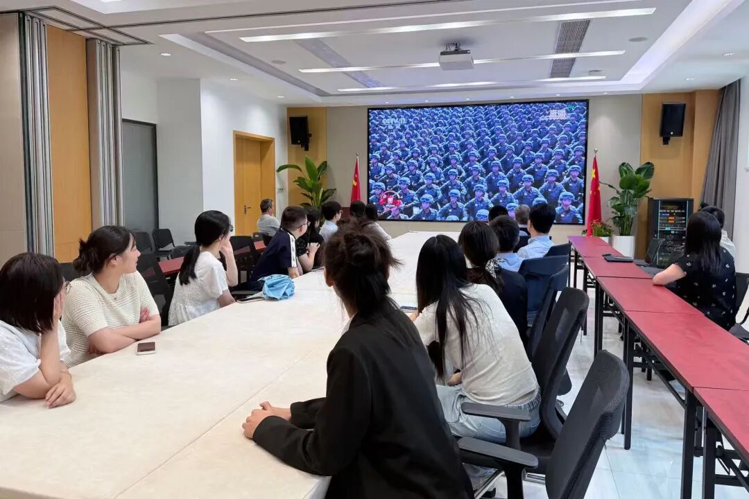 國浩大連全體成員在大會議室集中觀看了閱兵儀式直播。